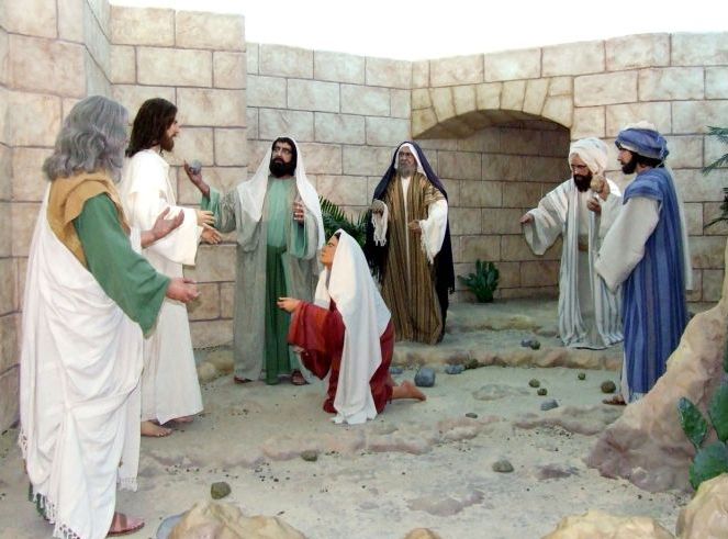 lei levam até ele uma mulher que foi pega flagrante adultério. A Jesus é posta