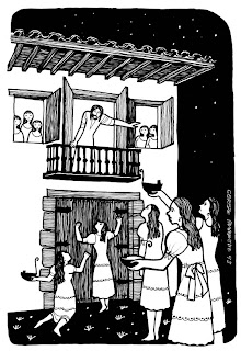 `O noivo está chegando. Ide ao seu encontro!'