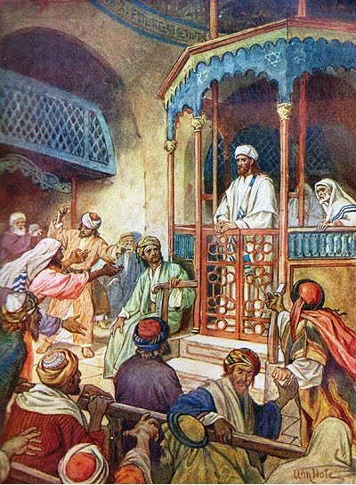Jesus chegou à sinagoga de Nazaré, depois de sua prova no deserto, segundo a narração de Lucas. A cena comunica a síntese e o modelo da pregação de Jesus. De início, as pessoas ficam surpresas com o anúncio e a declaração de Jesus como Messias. “Todos começaram a elogiá-lo”. Em seguida, veio a dúvida: “Não é ele o filho de José?” Segue-se a rejeição: “todos na sinagoga ficaram com muita raiva”. E, acabam por tentar um homicídio: “arrastaram Jesus para fora da cidade e o levaram até o alto do monte onde a cidade estava construída, para o jogar dali abaixo”. O texto conclui dizendo que “ele passou pelo meio da multidão e foi embora”. Em tão pouco tempo, o povo manifesta diferentes reações. Acolhe, reprova, condena, tenta eliminar!